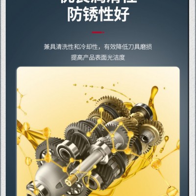 本产品具有优良的润滑性、防锈性、清洗性和冷却性,能有效降低刀具磨损,提高产品表面光洁度;