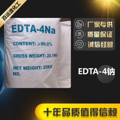 EDTA四钠又名乙二胺四乙酸四钠盐。为白色粉末。易溶于水。用作硬水软化剂、多价螯合剂、彩色感光材料中冲洗加工漂白的定影液、丁苯橡胶的活化剂。是一种重要的络合剂及金属掩蔽剂。可用于纺织行业染色,水质处理、彩色感光、医药、日用化工、造纸等行业,作为添加剂、活化剂、净水剂、金属离子遮蔽剂和丁苯橡胶工业中的活化剂。干法晴纶行业中抵销金属干扰,提高所染织物的色泽和亮度,还可用于液体洗涤剂中,提高洗涤质量,增强洗涤效果。