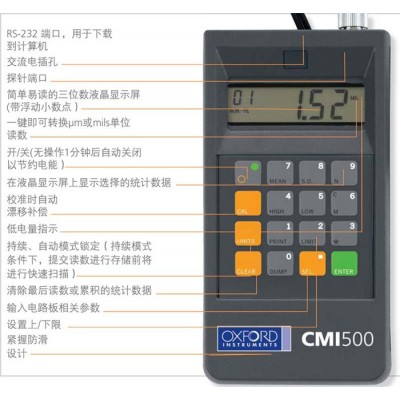 本公司供应牛津仪器CMI500牛津仪器 CMI500 否 孔径范围:0.899mm-3mm,厚度范围:2-102um 镀层测厚仪 0.1um,质量保证,欢迎咨询洽谈。
