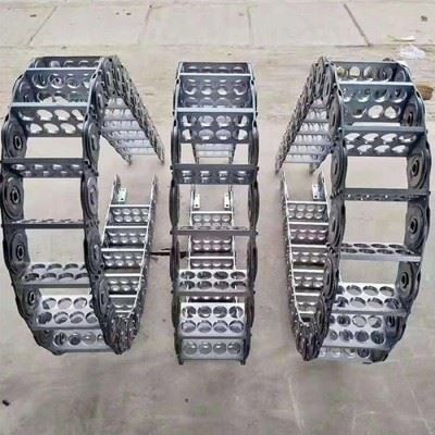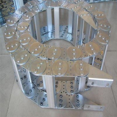 钢制拖链的宽度可以依据用户要求专门定做,曲折半径从800-50之间,当缆、管需求常常拆装、修理或许管接头尺度大于支撑板内腔孔径的时侯。可以选用一般支撑板而且选用分开式钢铝拖链,需承载较大缆、管承重的时侯、应该选用高强度的支撑板而且选用整块式钢铝拖链。 销轴要运用合金钢或锰钢渗碳,这样可加强耐磨性和硬度,然后添加钢铝拖链的运用寿命和强度,支撑板要选用规范厚度挤拉铝合金,装置缆、管的标准型号十分多的时分,可选用一般的支撑板及框架式的钢铝拖链,拖链的支撑片必需要渗碳,钢板一定要运用国标钢板,有些厂商运用非标钢板,拖链片下差过大(厚度不行)。 这样拖链的强度显着下降,运用寿命无法保证,略微加长**出现下塌。链板的高度,也**是支撑板的高度,是由电缆大直径决议的,机床大极限工作时,如拖链的宽度超越300mm,拖链的长度超越4m时出于稳定性原因,应考虑挑选加大一号标准的拖链。 钢板防护罩具有密封好,能防铁屑、防冷却液,防东西的偶然事端。坚固耐用,工作平稳,噪音小,外形美丽。钢板防护罩合适高速运动机床导轨防护既平稳又无振动噪音。钢板防护罩设备不但保护护板的运用寿命,更重要的是保证了机床精密度。