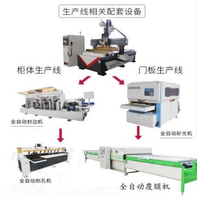 数控排刀加工中心,采用1个9kw换刀主轴,12把排式换刀刀库;可以满足各种板式加工生产,各种复杂门板雕刻加工;实现一机多用,性价比高。