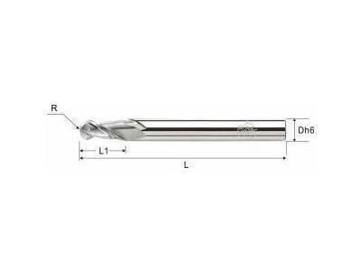 台湾西门德克(CMTec)1.0R铝合金用加长球头钨钢铣刀(二刃),订货编号:CEXBL20100,R球头半径1.0R、总长75.0mm(L)、刃长4.0mm(L1)、柄径6.0mm(D)。