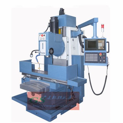 XK7150数控铣床是在普通床身铣床的机床上,开发的一种新型通用床身式机床,该铣床的结构合理、刚性性能好、产品精度 高,具有铣削、钻孔、攻丝、扩孔及铰孔等多种功能,是机械、电子、仪器、仪表、模具、汽车等行业的理想加工设备。 主要结构及特点: XK7150数控铣床主要构件的底座、机身、工作台、中滑座等采用FC30铸造,经人工时效消除内应力处理、使耐磨耗,变型量降到.低,保证机床长期使用的稳定性。 整体结构为床身式结构,铣头为大功率机械调速高精度铣头,铣头可在左、右20°范围内工作;主轴套筒的进给具有自动、手动、手动微调等功能;主轴刚性大,调速方便、灵活。 XK7150数控铣床主轴箱的机动进给和快速移动可以采用手动、机动上下升降等操作,因此操作方便、快捷。 床身上纵、横向有手动进给、机动进给和机动快进三种,不同的进给速度,能满足不同的加工要求;快速进给可使工件迅速到达加工位置,缩短非加工时间。 工作台X向行程可达1400mm,拓展了机床加工范围, Y、Z向导轨为宽矩形导轨,且X、Y、Z三方向导轨副经超音频淬火、精密磨削及刮研处理,配合强制润滑,减小工作台的低速爬行,提高精度,使用寿命长。 润滑装置可对纵、横、垂向的丝杠及导轨进行强制润滑,减小机床的磨损,保证机床的高效运转。同时,冷却系统通过调整喷嘴改变冷却液流量的大小,满足不同的加工需求。 XK7150数控铣床操作系统通过支臂悬挂在机床的右上方,符合人体工程学原理,操作方便;操作面板均使用形象化符号设计,简单直观易操作。