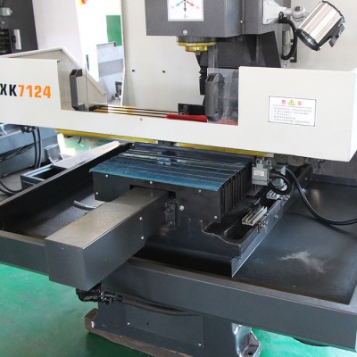 数控机床XK7124系列结构及外形优化设计,紧凑合理、刚性加强。能够实现对各种盘类、板类、壳体、凸轮、模具等复杂零件的加工,可完成钻、铣、攻丝等多种工序,适合于批量产品的生产,能满足对中小型工件的钻、攻、铣工序的加工。