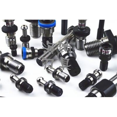 拉钉是带螺纹的零件,常固定在工具端的尾部。机床主轴的拉紧机构主要依靠他把刀柄拉紧在主轴内,实现机床的加工。拉紧力的保持靠一种弹簧,拉紧后保证刀柄和刀具与机床主轴的紧密配合。由于刀具标准的不同,机床主轴形式的不同,拉钉的形式也不尽相同。这样就出现一个问题:面对各种形式的拉钉,我们怎样才能选择适合自己的拉丁呢?最好的方式就是参考您所购买的机床的说明书。机床的说明书中,就机床的刀柄形式和拉钉形式都会有一个详细的说明,大多会有一个详细的图纸。 拉钉有叁个部位需要我们特别的注意:1、拉钉头的角度2、基准面到此角度的距离3、螺纹的形式。在安装拉钉的时候,要尽量使用扭矩扳手,适当的扭矩可以增加拉钉的使用寿命。当机床的主轴拉爪拉紧拉钉的时候,会在拉钉表面留下小小的印记。当出现拉爪拉断的时候,断爪将挖入拉钉,出现较深的痕迹,这样的拉钉最好不要使用了。 作为机床的使用者,在使用中必须注意细节问题,才能使用好机床。