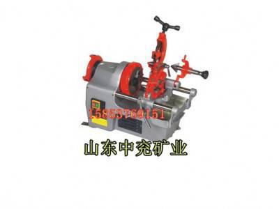 ??套丝机工作时,先把要加工螺纹的管子放进管子卡盘,撞击卡紧,按下启动开关,管子**随卡盘转动起来,调节好板牙头上的板牙开口大小,设定好丝口长短.然后顺时针扳动进刀手轮,使板牙头上的板牙刀以恒力贴紧转动的管子的端部,板牙刀**自动切削套丝,同时冷却系统自动为板牙刀喷油冷却,等丝口加工到预先设定的长度时,板牙刀**会自动张开,丝口加工结束.关闭电源,撞开卡盘,取出管子.