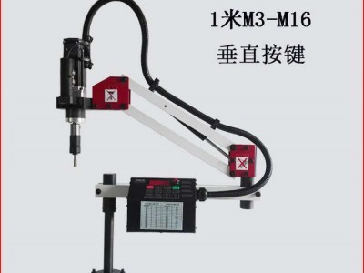 数控攻丝机是一种主要用于切削螺纹、倒角、拧螺钉、扩孔等的工具。配有可上下、前后、左右移动的机械式手臂,作业半径大,突破了车床、钻床、镗床等传统设备在空间上的限制。其在切削螺纹时,利用丝锥导向,始终保持与工作台面垂直,不产生拉力与压力,处于浮动状态,从而保证了螺纹的标准几何尺寸,当与移动式工作台配合使用时,在用于超大工件,复杂工件,多孔位工件切削螺纹的时候有着无可比拟的优势:机动灵活,重复定位快,精度高。