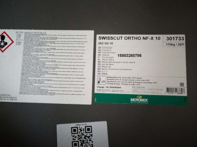 | 切削油 | MOTOREX SWISSCUT ORTHO NF-X15 | 201L | 成品油 |