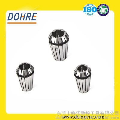 哆乐筒夹的特点:1、高碳轴承钢材质SUJ22、硬质HRC46±1度3、沟槽细密4、高精度5、产品全检6、可非标定制哆乐筒夹有2个级别,UP级(5UM)和A级(8UM)哆乐筒夹规格有:ER8、ER11、ER16、ER20、ER25、ER32、ER40