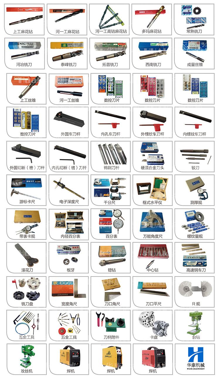 铣   刀:常熟、泰峰、河冶、西南、成量牌直柄立铣刀、锥柄立铣刀、锥柄加长立铣刀、直柄键槽铣刀、锥柄键槽铣刀。